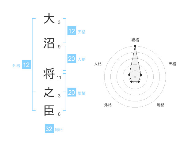 大沼 将之臣さんを姓名の画数から五運を鑑定