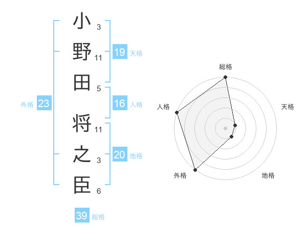 小野田 将之臣さんを姓名の画数から五運を鑑定