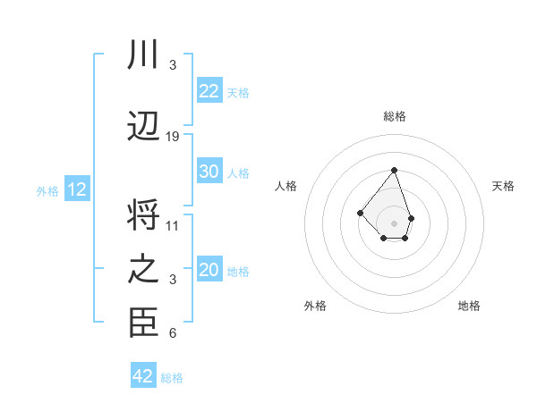 川辺 将之臣さんを姓名の画数から五運を鑑定
