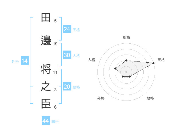 田邊 将之臣さんを姓名の画数から五運を鑑定
