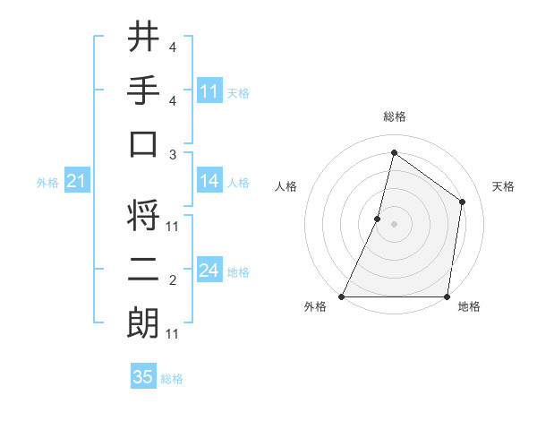 井手口 将二朗さんを姓名の画数から五運を鑑定