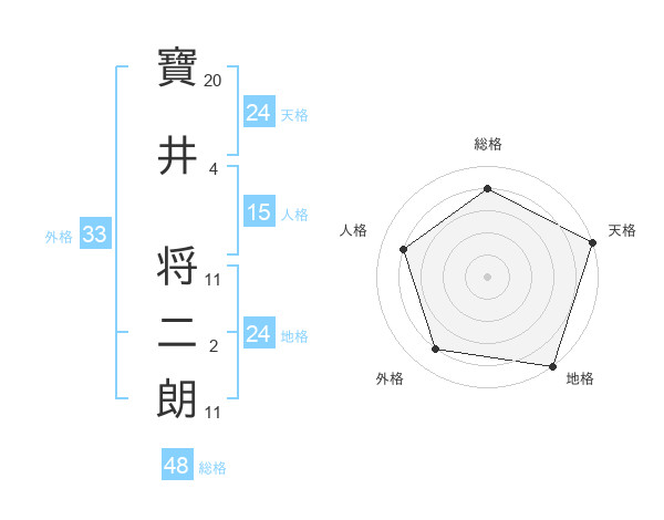 寶井 将二朗さんを姓名の画数から五運を鑑定