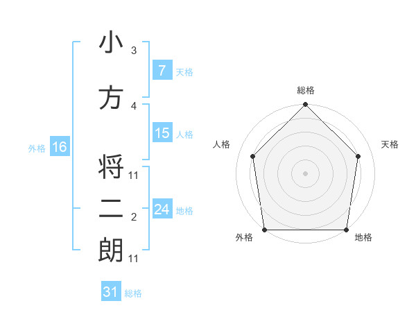 小方 将二朗さんを姓名の画数から五運を鑑定