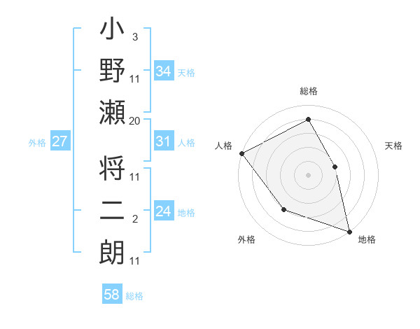小野瀬 将二朗さんを姓名の画数から五運を鑑定