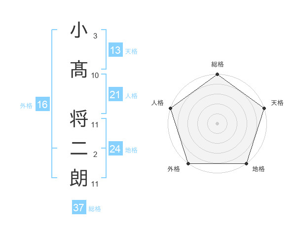 小髙 将二朗さんの総格は37画の5点!