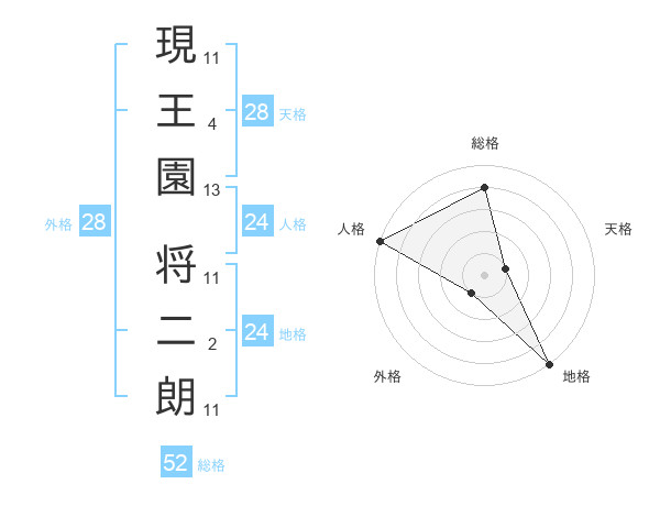 現王園 将二朗さんを姓名の画数から五運を鑑定