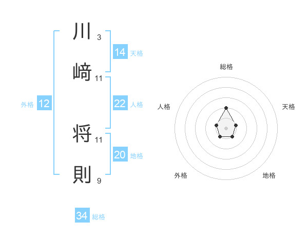 川﨑 将則さんの総格は34画の2点!