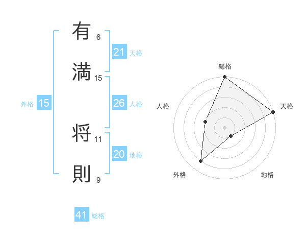 有満 将則さんの天格は21画の5点!
