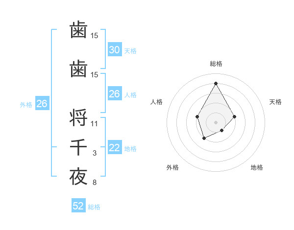 歯歯 将千夜さんの外格は26画の2点!