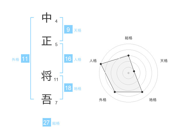 中正 将吾さんの地格は18画の4点!