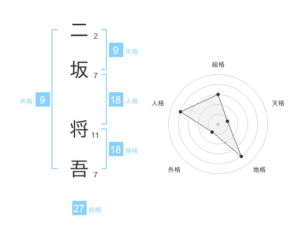 二坂 将吾さんを姓名の画数から五運を鑑定