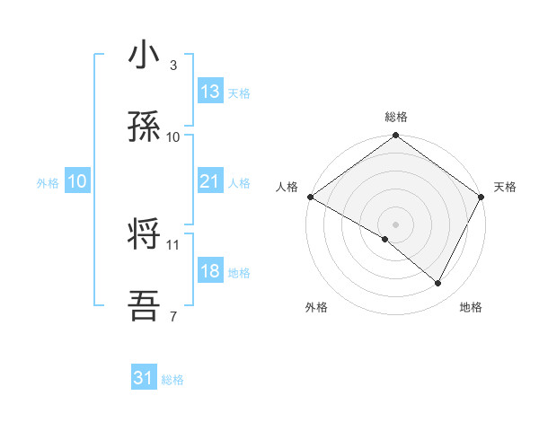 小孫 将吾さんを姓名の画数から五運を鑑定