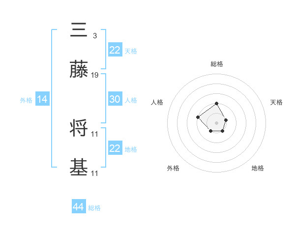 三藤 将基さんの地格は22画の1点!