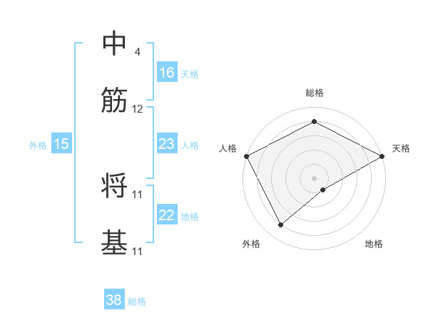 中筋 将基さんの総格は38画の4点!