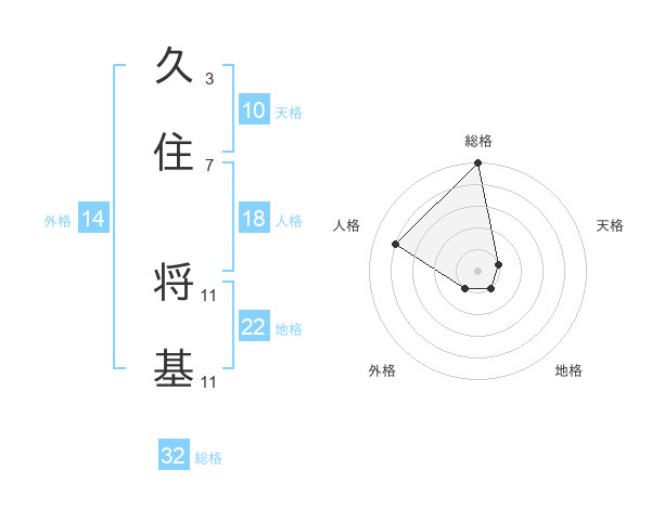 久住 将基さんの総格は32画の5点!