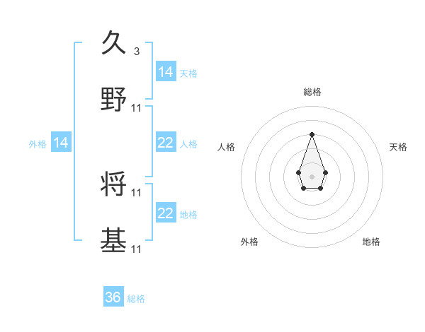 久野 将基さんの地格は22画の1点!
