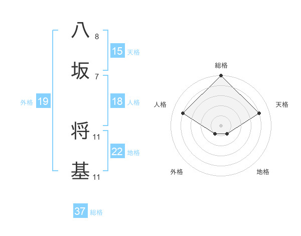 八坂 将基さんの総格は37画の5点!