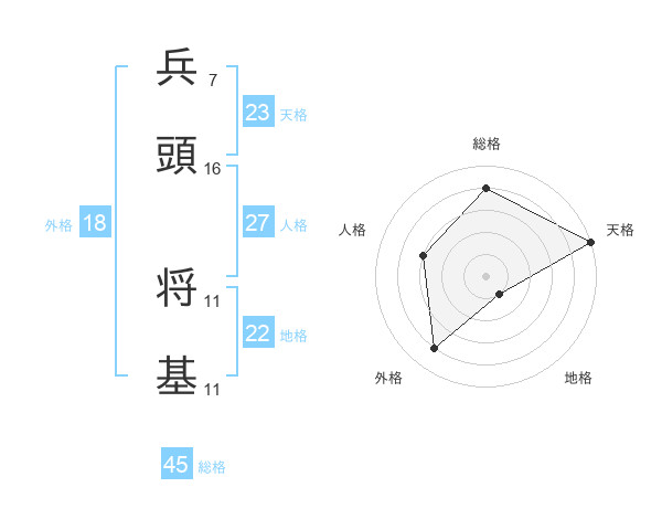 兵頭 将基さんの天格は23画の5点!