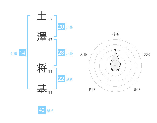土澤 将基さんを姓名の画数から五運を鑑定