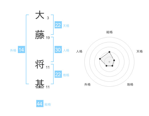 大藤 将基さんの総格は44画の2点!