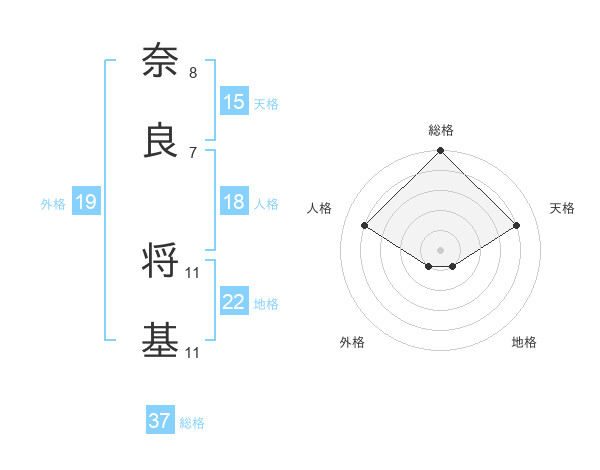 奈良 将基さんの総格は37画の5点!
