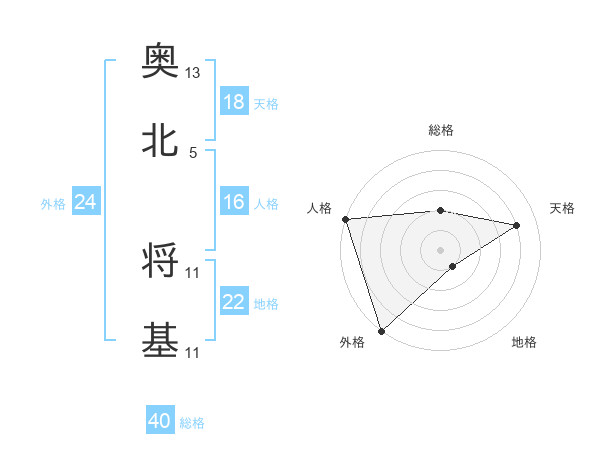 奥北 将基さんの外格は24画の5点!