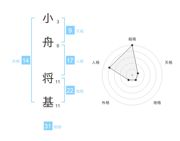 小舟 将基さんの総格は31画の5点!