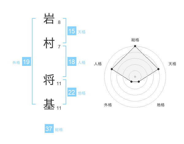 岩村 将基さんの総格は37画の5点!