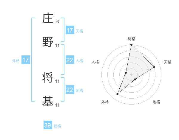 庄野 将基さんの外格は17画の4点!