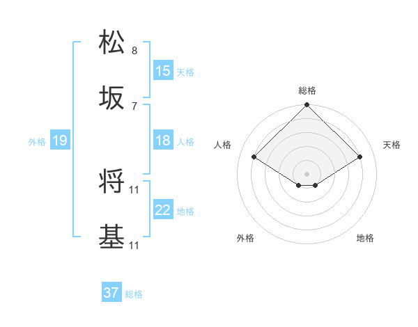 松坂 将基さんの地格は22画の1点!
