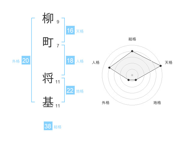 柳町 将基さんの総格は38画の4点!