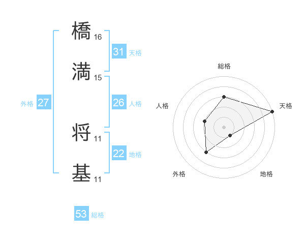 橋満 将基さんの総格は53画の3点!