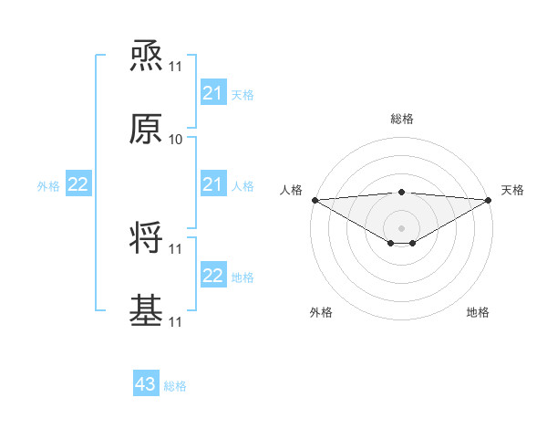 焏原 将基さんの天格は21画の5点!