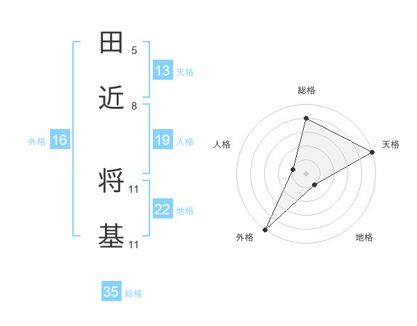 田近 将基さんの天格は13画の5点!
