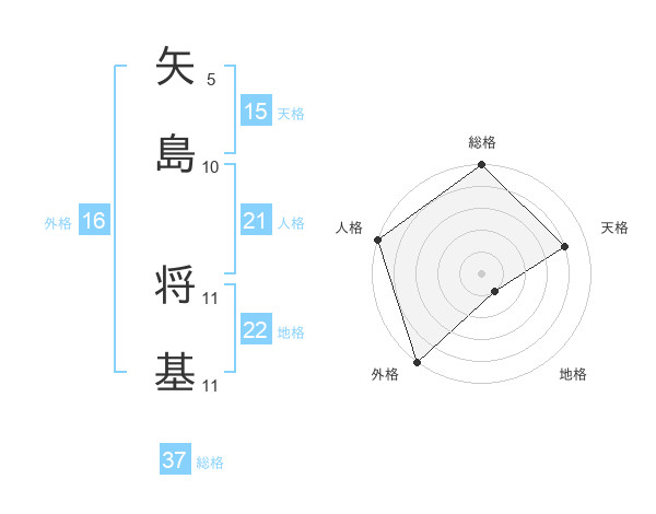 矢島 将基さんの総格は37画の5点!