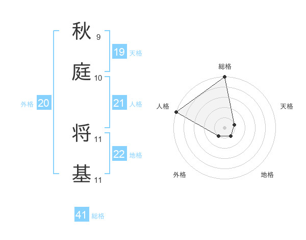 秋庭 将基さんの総格は41画の5点!