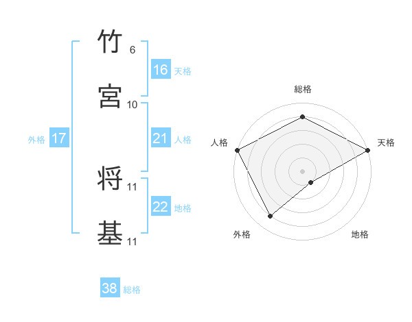 竹宮 将基さんの総格は38画の4点!