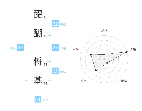 醍醐 将基さんの天格は32画の5点!