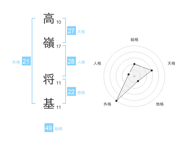 高嶺 将基さんの外格は21画の5点!