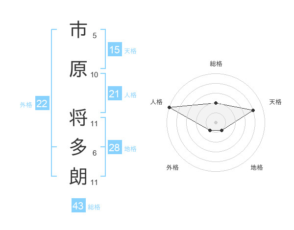 市原 将多朗さんを姓名の画数から五運を鑑定