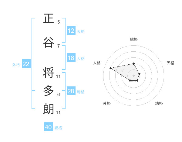 正谷 将多朗さんを姓名の画数から五運を鑑定