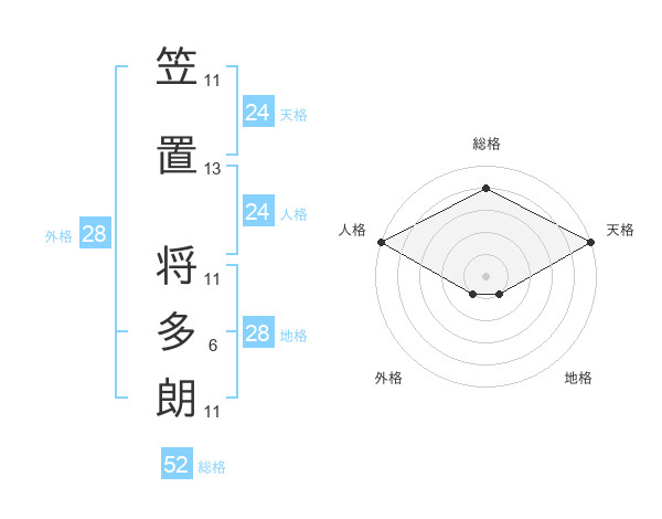 笠置 将多朗さんの総格は52画の4点