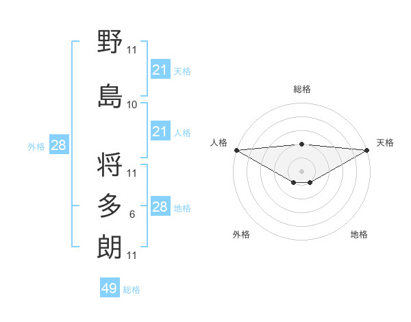 野島 将多朗さんの天格は21画の5点!