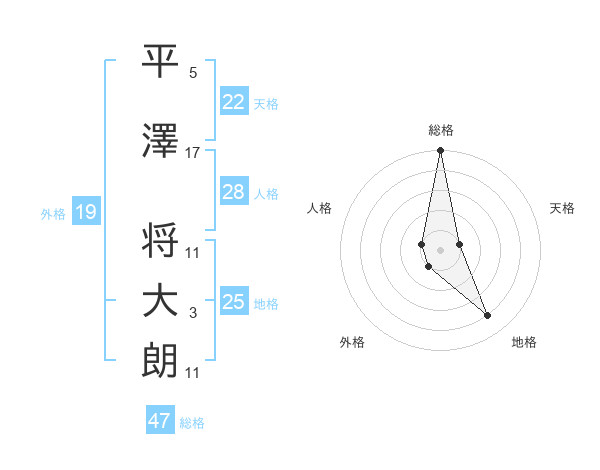 平澤 将大朗さんを姓名の画数から五運を鑑定