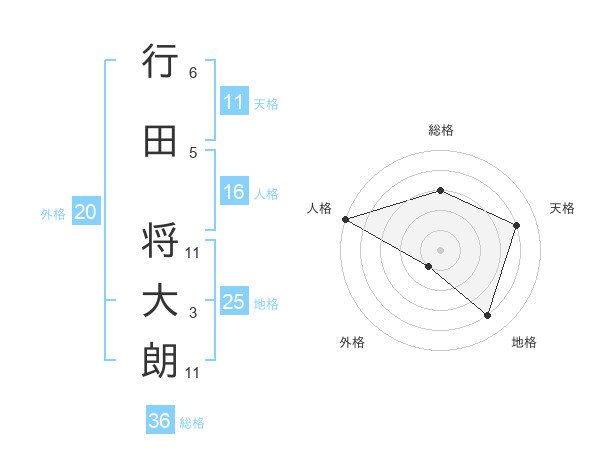 行田 将大朗さんを姓名の画数から五運を鑑定