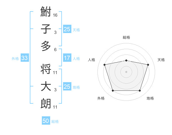 鮒子多 将大朗さんを姓名の画数から五運を鑑定