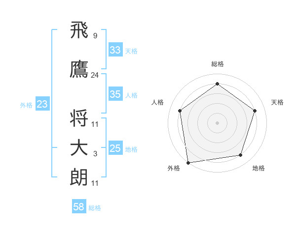 飛鷹 将大朗さんの総格は58画の4点!
