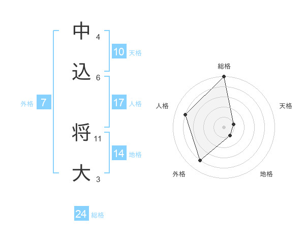 中込 将大さんの総格は24画の5点!