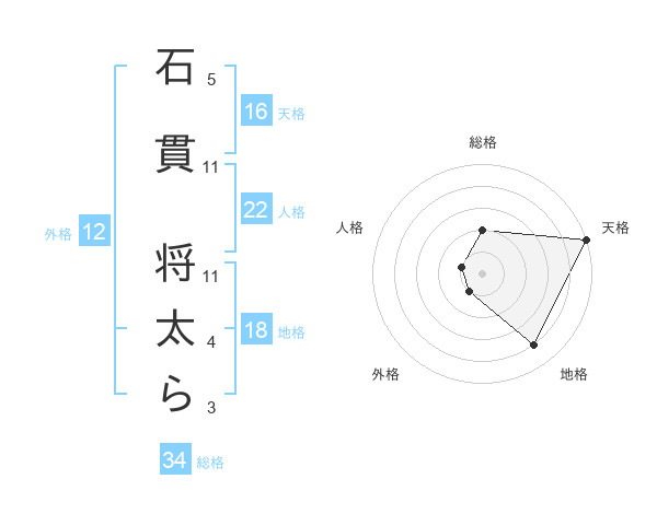 石貫 将太らさんの総格は34画の2点!