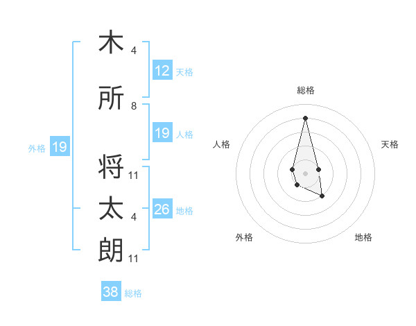 木所 将太朗さんの総格は38画の4点!